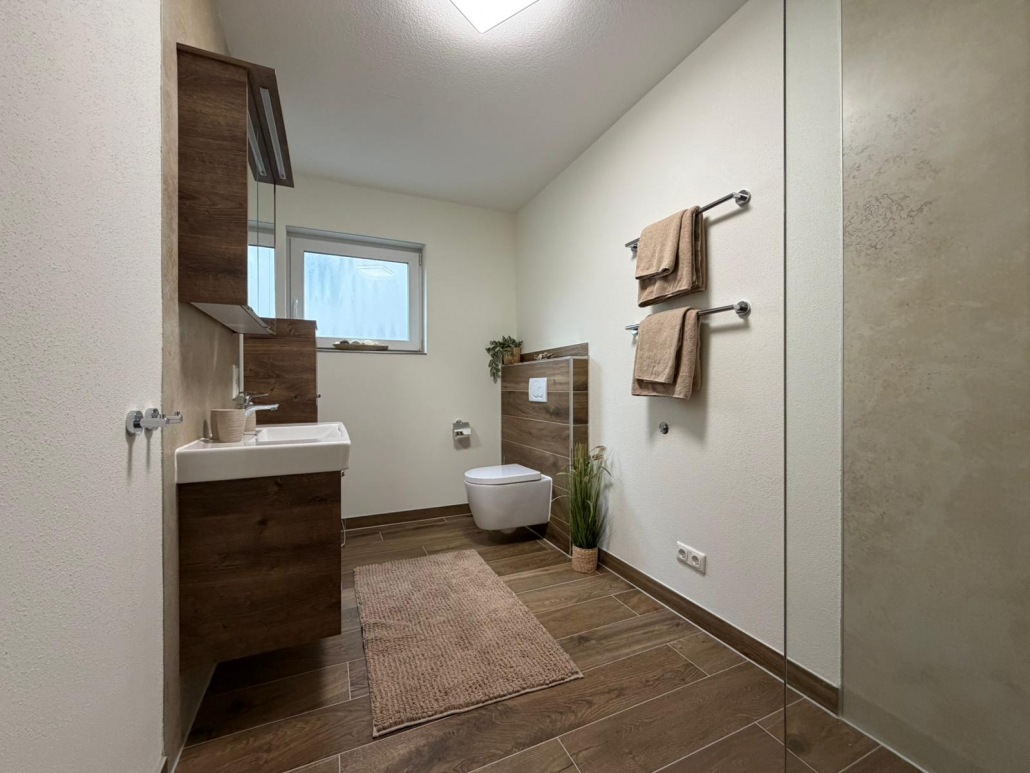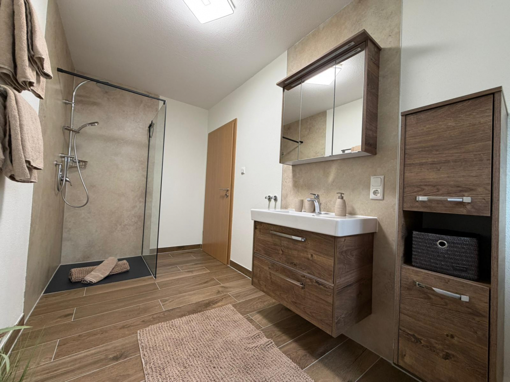 Unsere 64qm Ferienwohnung für 2-3 Personen, befindet sich im Untergeschoss, mit einem separatem einstufigen Eingang, hinterm Haus.